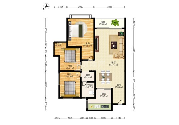 乐府花园,3室1厅1卫 88㎡