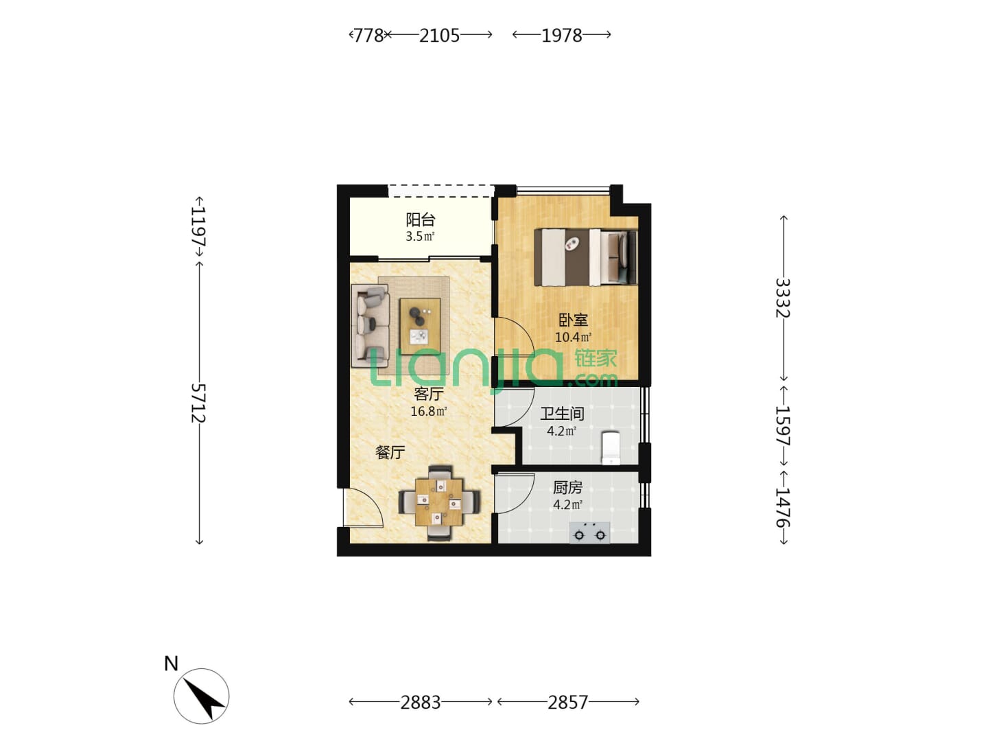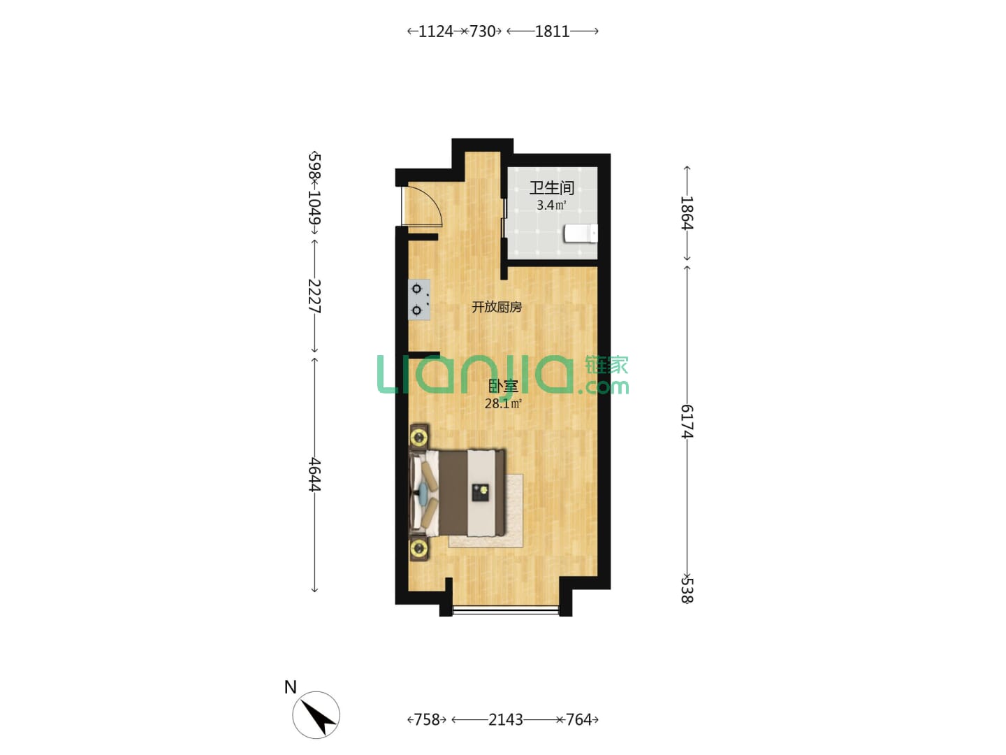 1室1厅1卫 40㎡