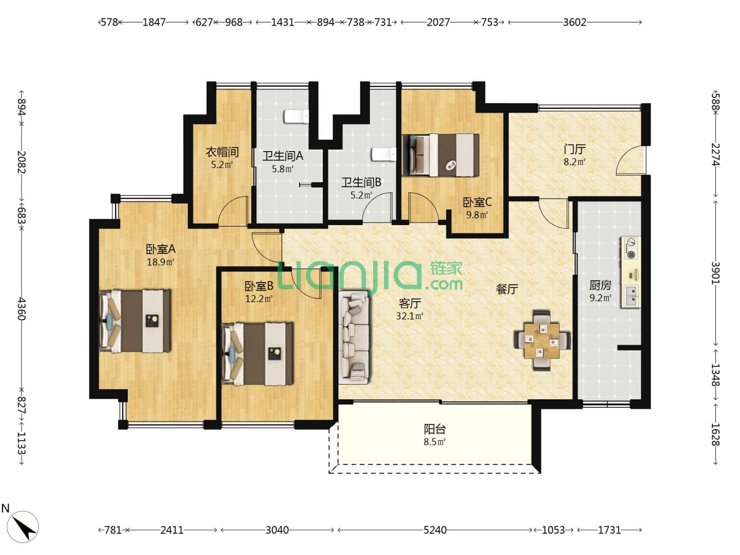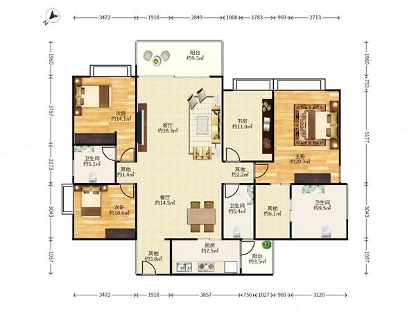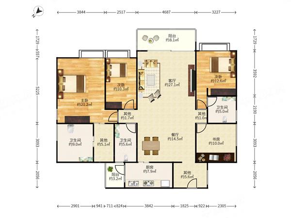 3室2厅2卫 88㎡