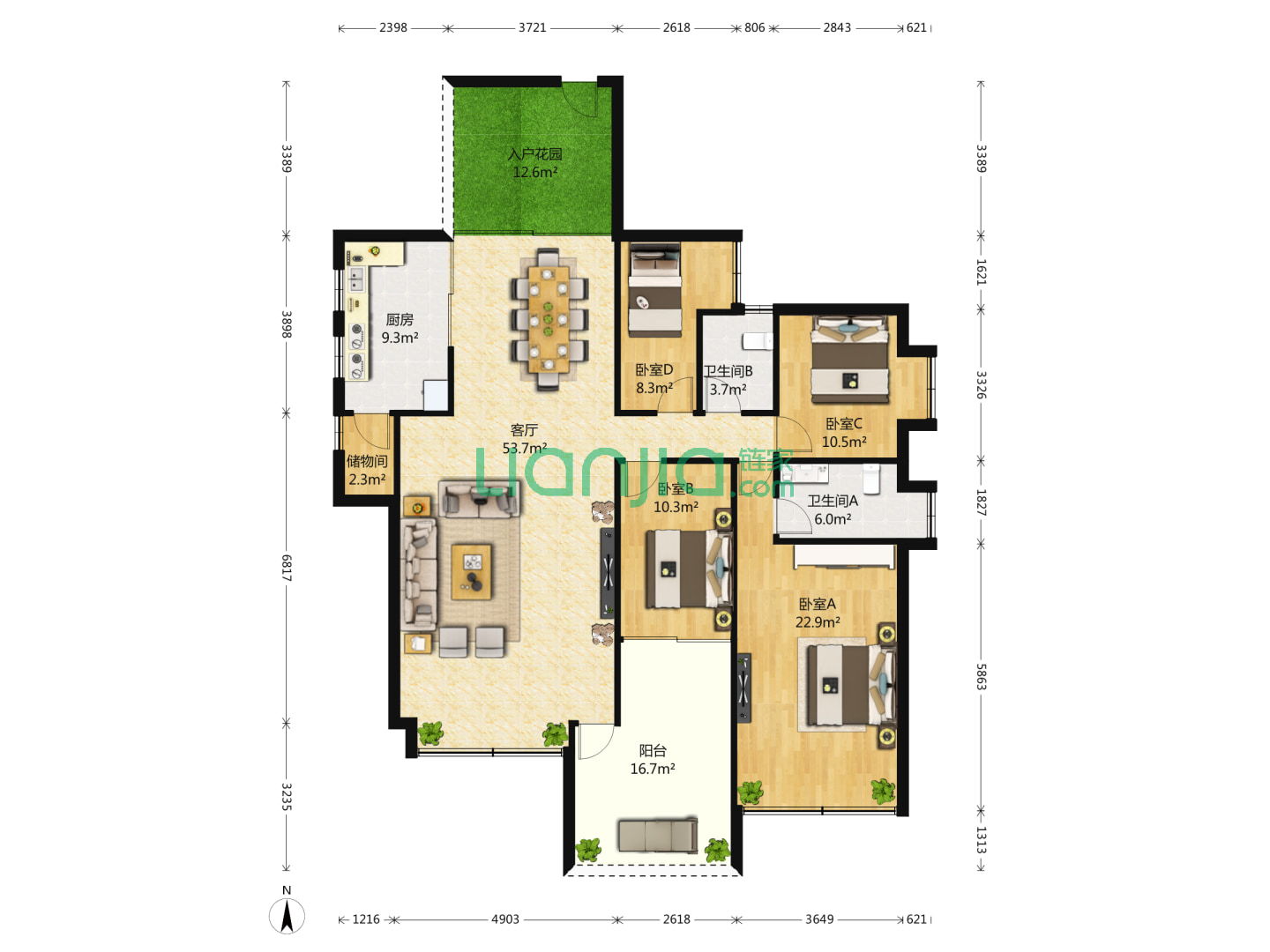3室2厅2卫 121㎡