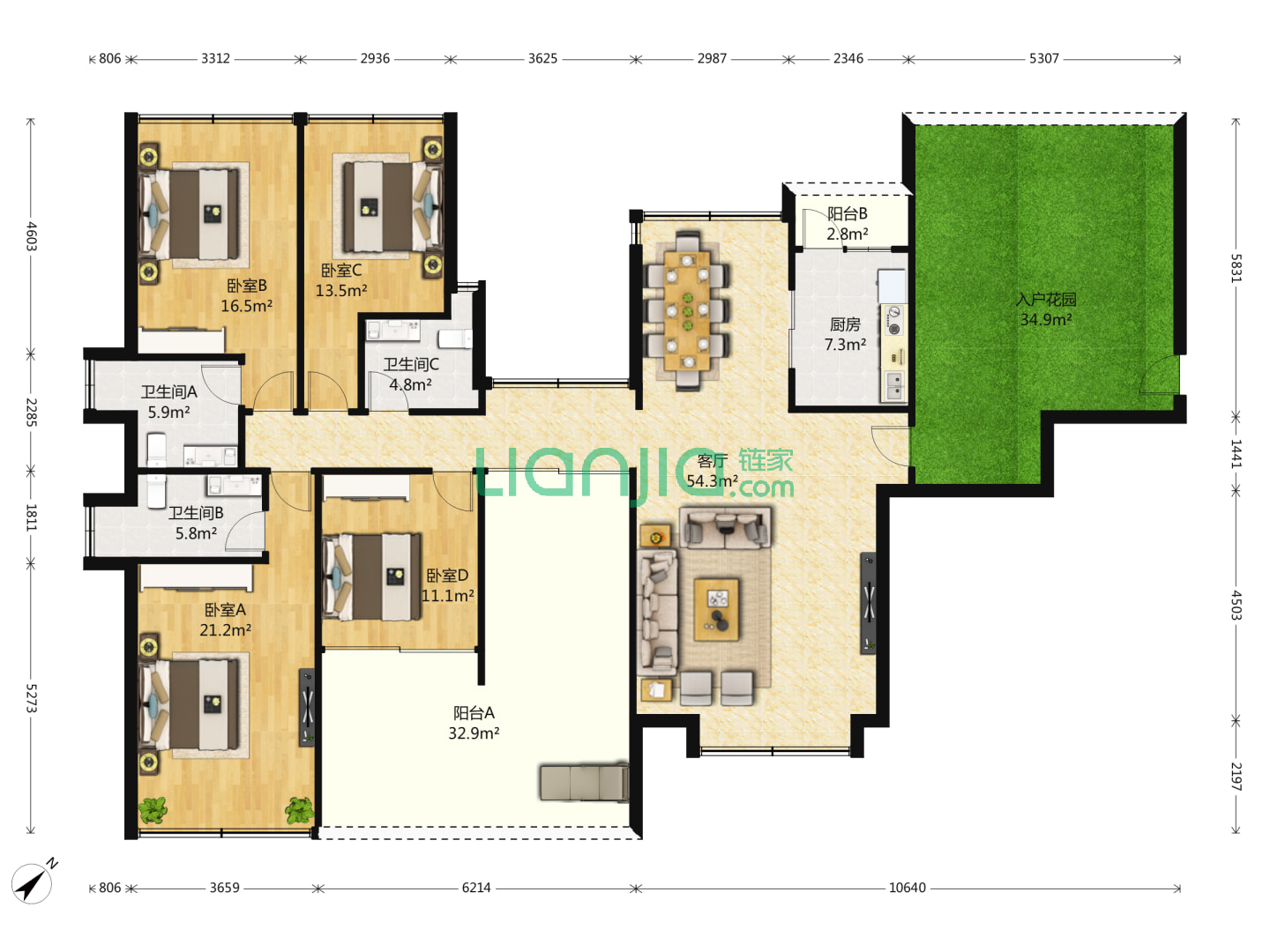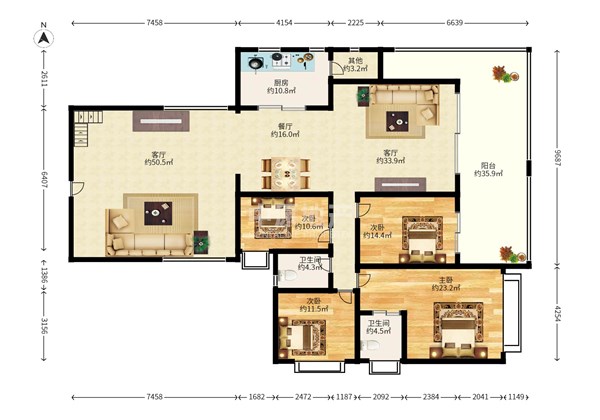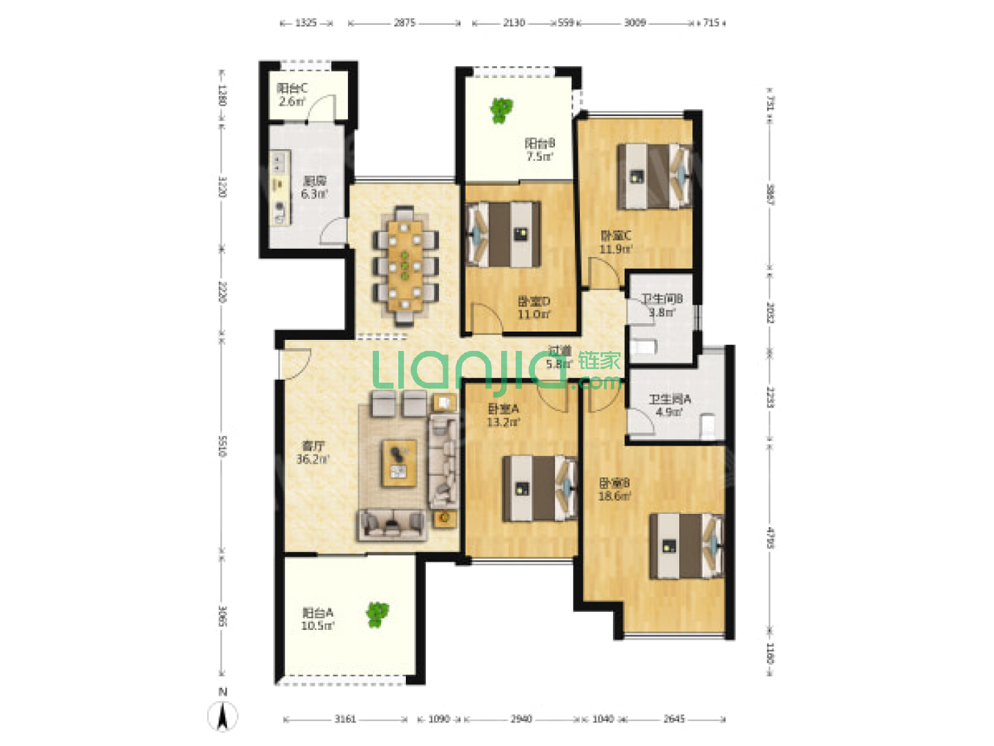 5室2厅2卫 165㎡