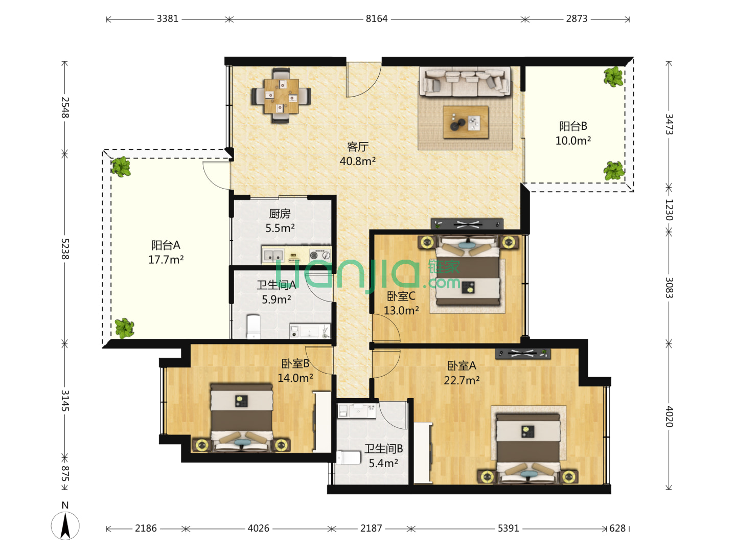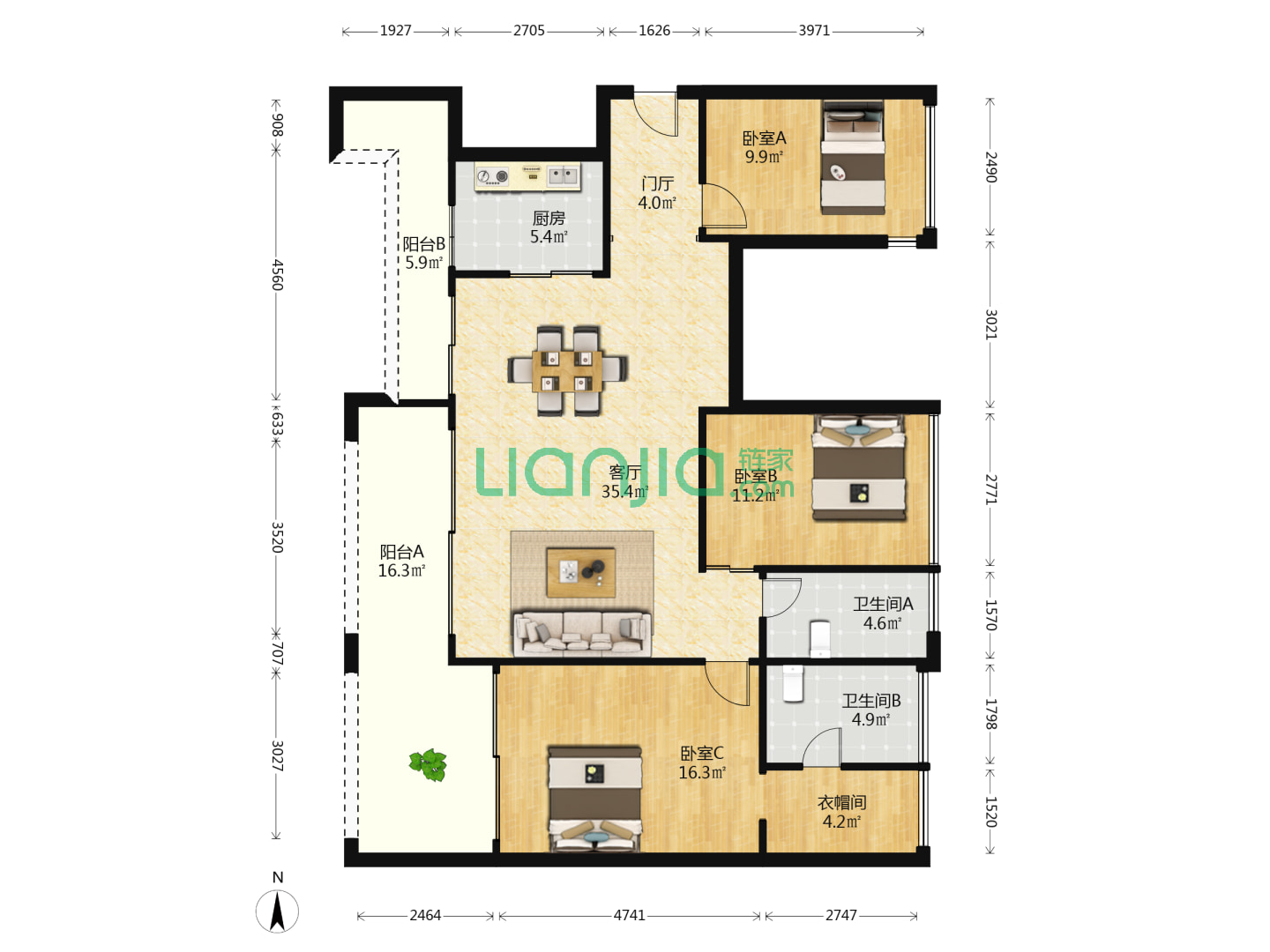 3室2厅2卫 111㎡