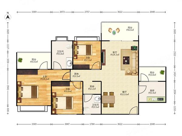 3室2厅2卫 88㎡