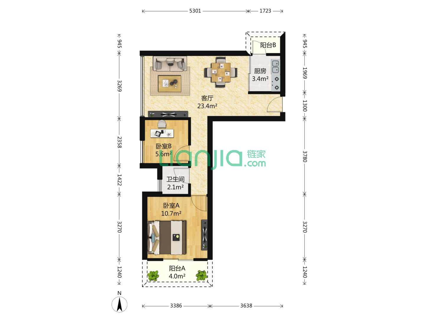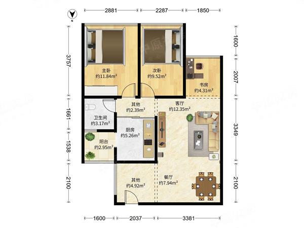 2室2厅2卫 63㎡