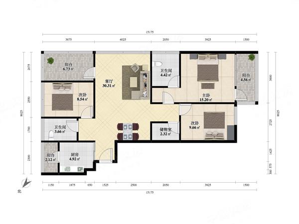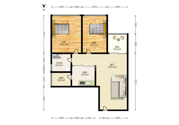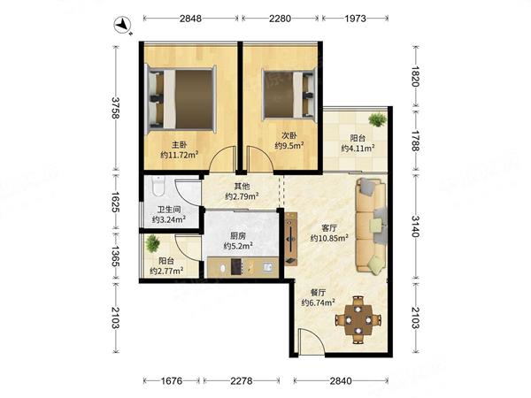 2室2厅2卫 67㎡