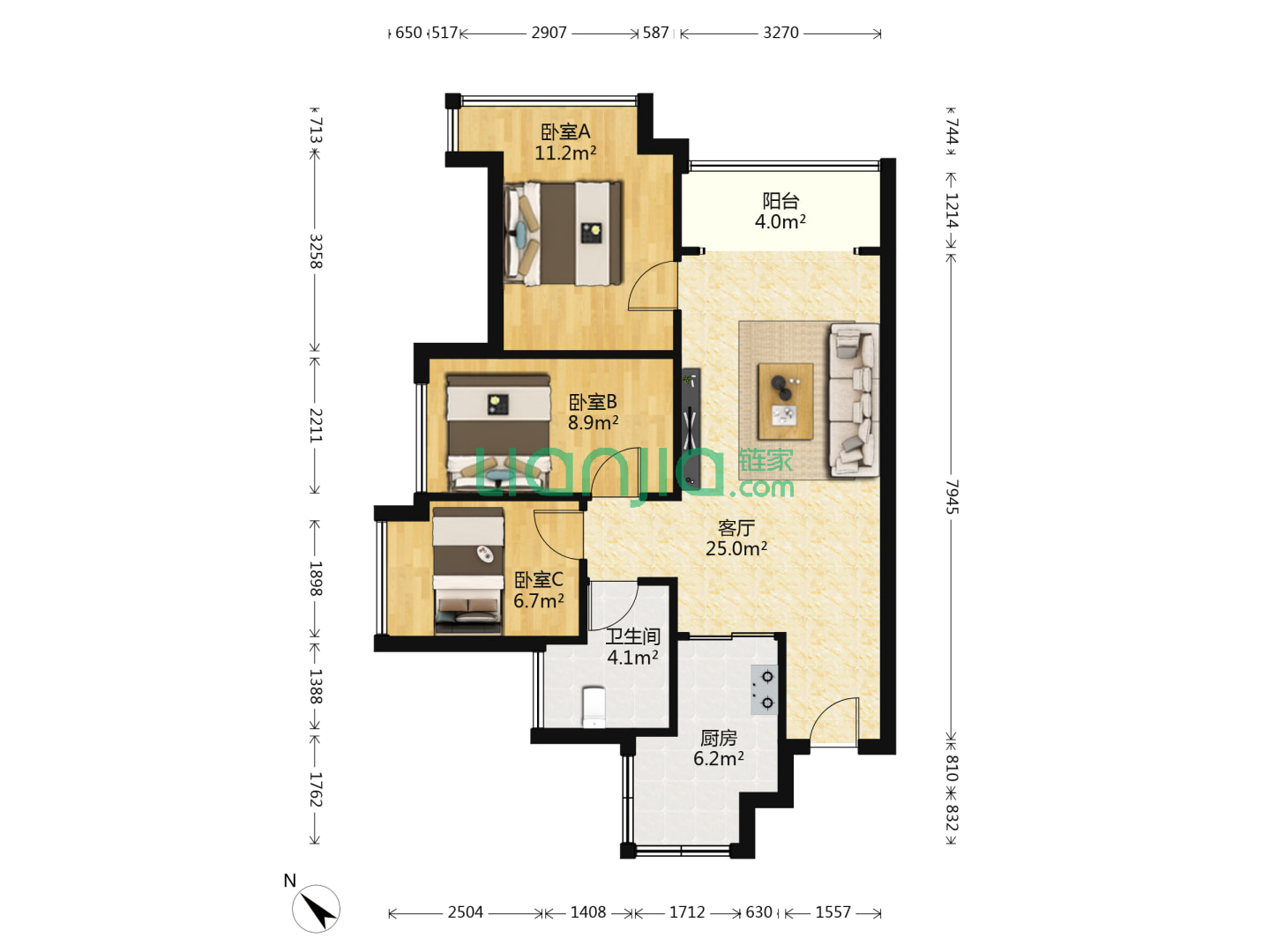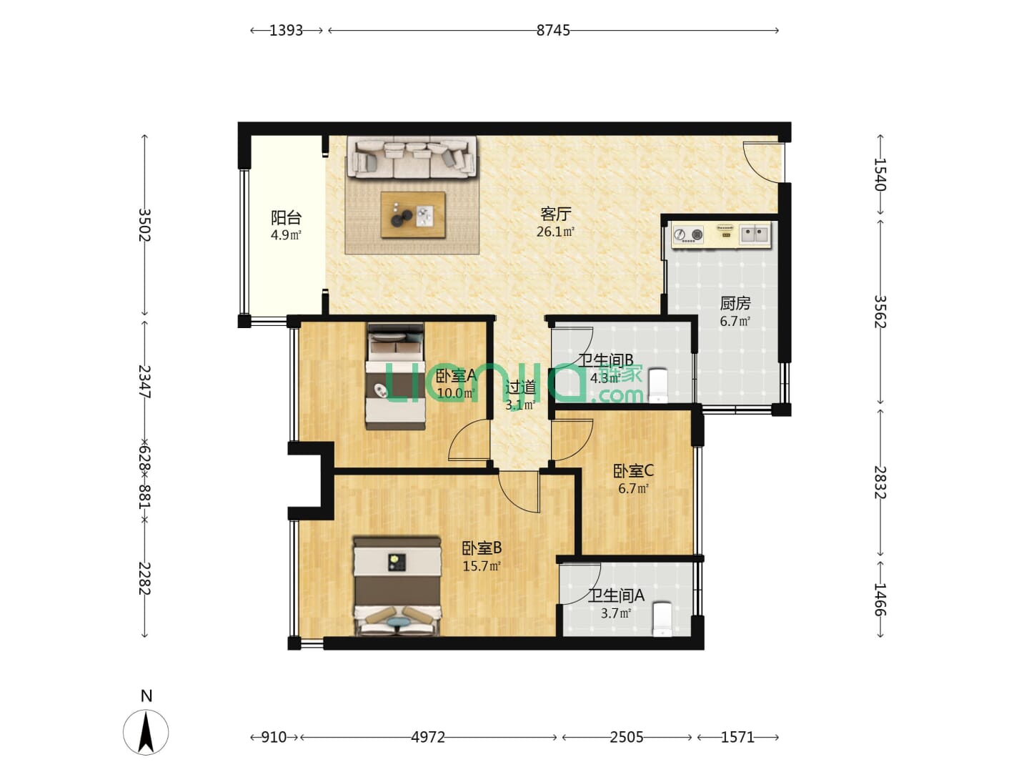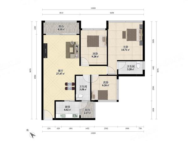 3室2厅2卫 89㎡