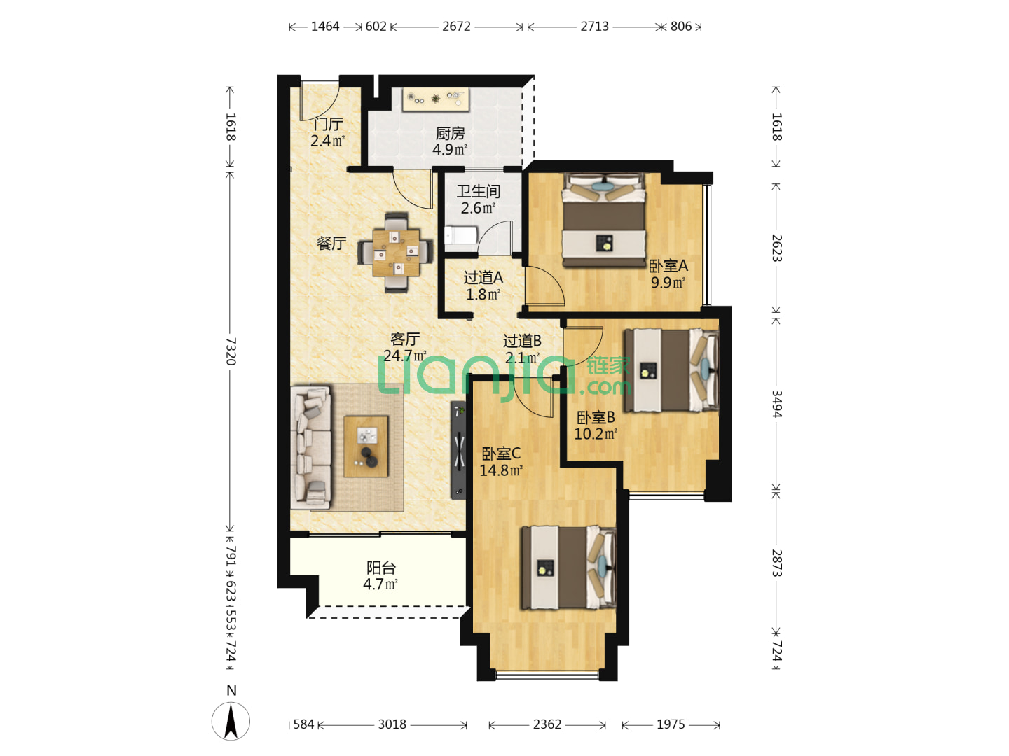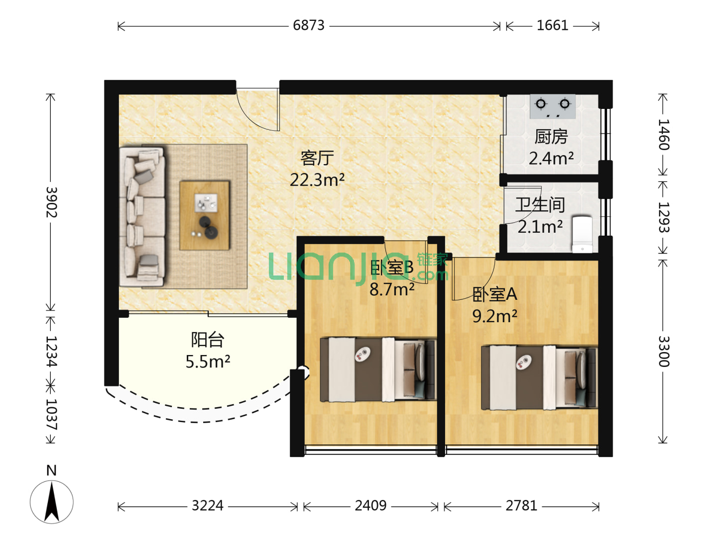 1室1卫 93㎡